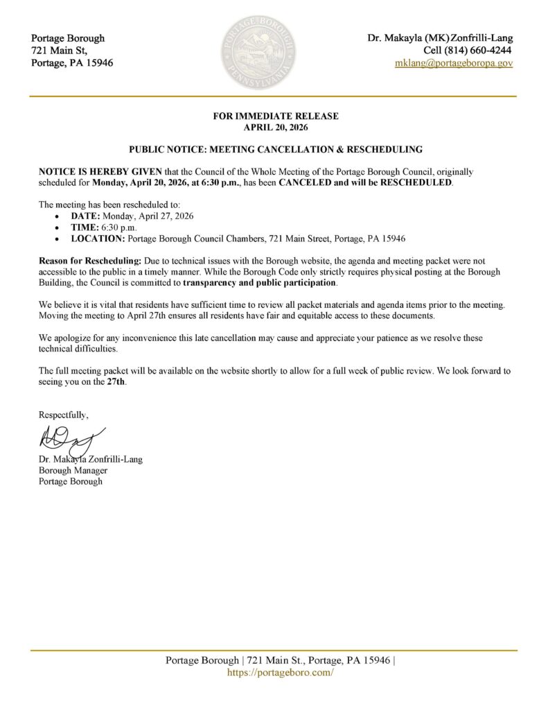 Meeting Cancellation/Rescheduling Posted on 04/20/202604/21/2026 by Jessi Carney April 20, 2026 Meeting Cancellation/Rescheduling